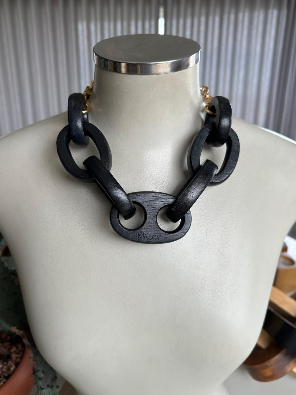 Colar Grumari Corrente Madeira Black e Ouro